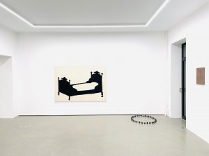 The formal restraint present in both practices, together with their spatially minimal compositions, generates a muted tension. The underlying erotic potential scattered throughout the works does not surface immediately nor appear explicitly; rather, it operates as a projection shaped by inherited tropes of the sensual within the histories of literature and image-making.