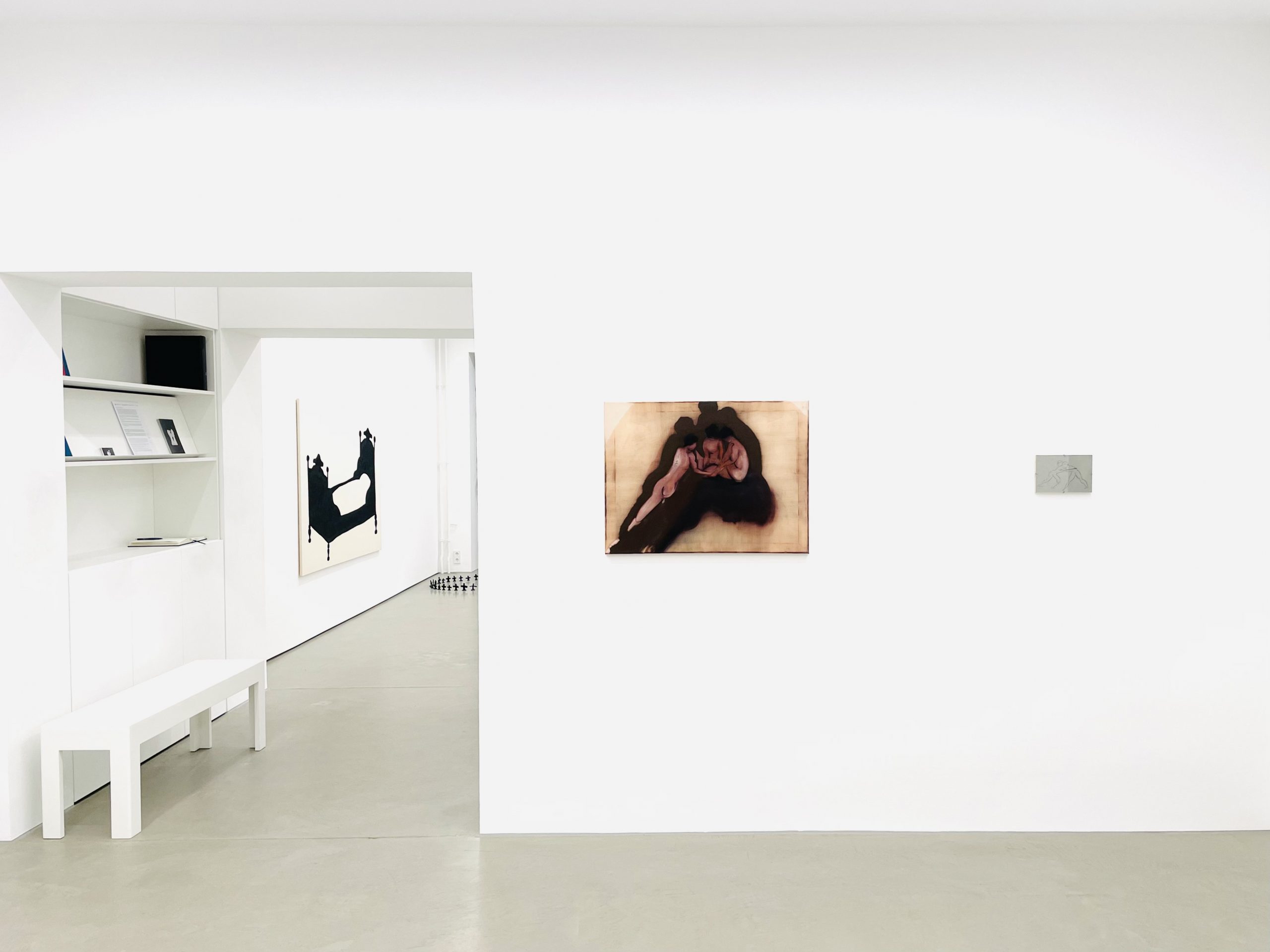 The formal restraint present in both practices, together with their spatially minimal compositions, generates a muted tension. The underlying erotic potential scattered throughout the works does not surface immediately nor appear explicitly; rather, it operates as a projection shaped by inherited tropes of the sensual within the histories of literature and image-making.